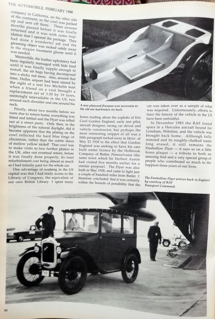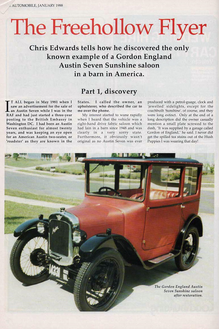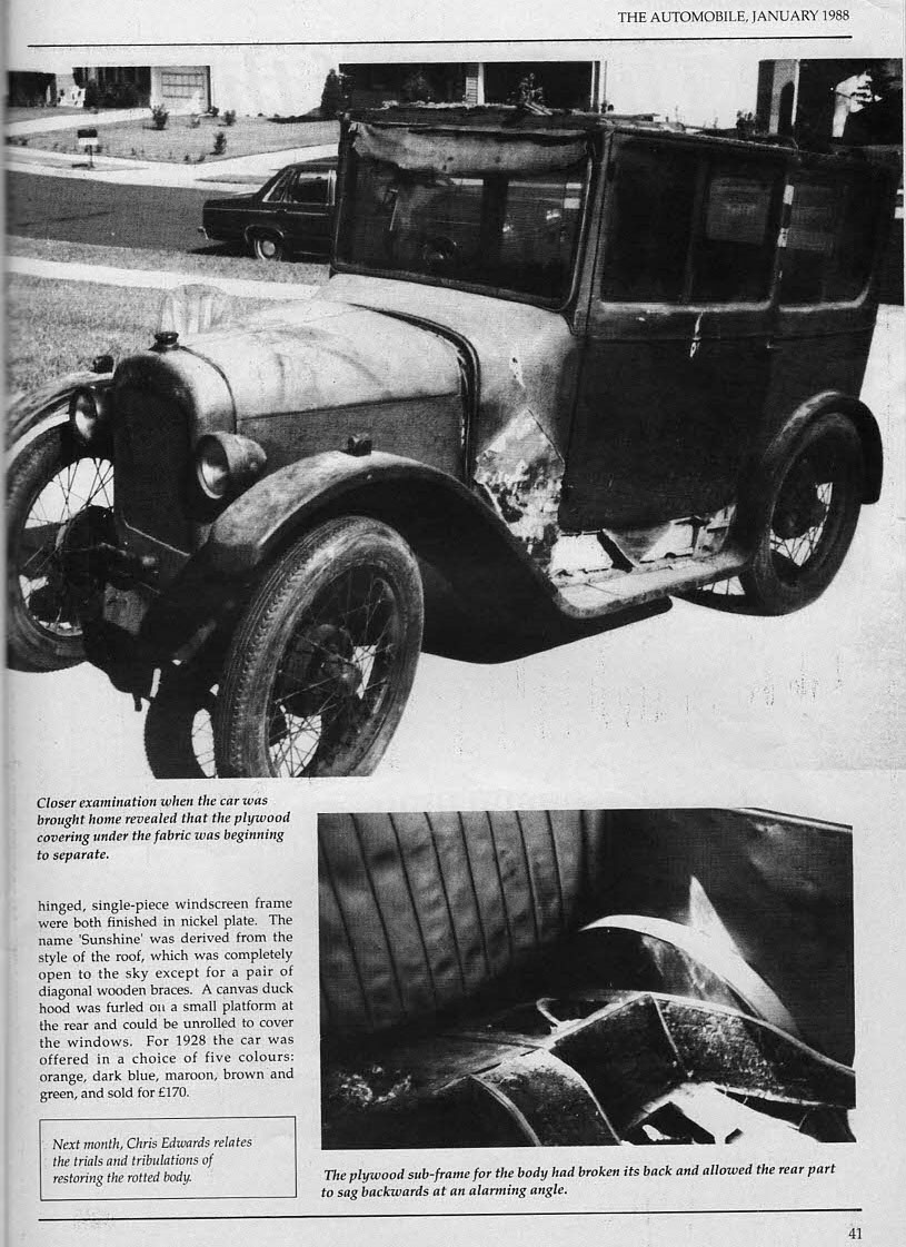 ’28 Sunshine Saloon 57690 Body #263 whose restoration by Chris Edwards in USA was recorded through the ‘Freehollow Flyer’ articles. Share this: Share on X (Opens in new window) X Share on Facebook (Opens in new window) Facebook Email a link to a friend (Opens in new window) Email Like Loading...
